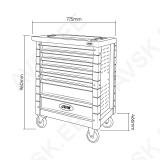 Katva valikuga korralik tööriistakäru koos tööriistadega. Sisaldab suure osa rasketranspordi. põllumajandustehnika. metsanduse. töömasinate jne remondiks vajalikke enamlevinud tööriistu. Tööriistad asuvad pehmetes PU-paneelides. Käru on tugeva ehitusega. sahtlisiinid laagritel. Sahtlid on tsentraallukustatavad. Käru otsaseinad on perforeeritud. saab paigaldada hoidekonkse. pealisosa plastkattega. Käru kaks ratast on keeravad. rattal on fikseerimislukk. Pulbervärvitud. keemia- ja õlikindel.