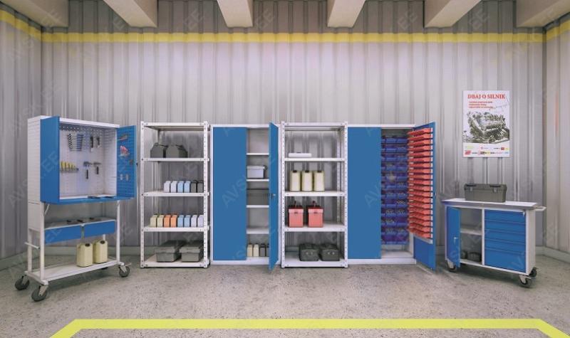 Tugeva ja jäiga keevisraamiga. mitte kokku polditud kapp. kontorisse. töökodadesse. tööstusele. Kapp sisaldab 4 riiuliplaati. kokku 5 riiulivahet. Riiuliplaadid kõrguses vabalt seatavad vastavalt vajadusele. Lisa riiuliplaat tootekoodiga 997000130. Uks lukustatav. Kapp helehall. uksed sinised RAL5012. Valmistatud 0.8 mm terasplekist.