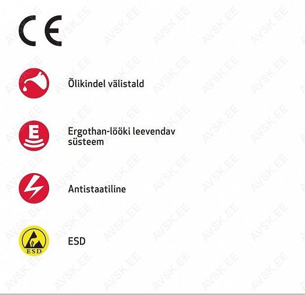 Tekstiil jalanõu. BOA kinnitus. suurepärane haarduvus. suurepärane sobivus. eriti mugav. hingav võrk. hingav sisetald. antibakteriaalne kiud-vähendab lõhna teket. poron® XRD® kahekordsed lööki leevendavad alad. suurepärane löögileevendus. ülikerge. pehme EVA. polüestripõhine elektrit juhtiv niit. õlikindel välistald. antistaatilised. vastab standardile IEC 61340-5-1 (ESD).
