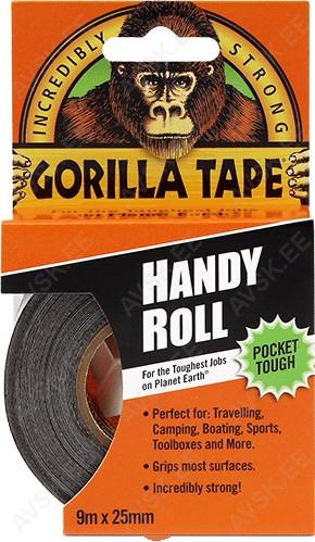 Tänu topeltpaksusega liimikihile ja UV kiirgusele vastupidavale pealispinnale. sobib riputatav Gorilla teip Handy Roll kasutamiseks nii siseruumides kui väljas. Topeltpaksusega liim täidab vahed ka krobedatel. ebatasastel pindadel ning kinnitub tugevalt. Sobib kasutamiseks erinevatel pindadel - puit. kivi. krohv. metall jne. Tihedalt põimitud kiht teeb Gorilla teibi eriti tugevaks ning vastupidavaks kuid mugavalt rebitavaks.