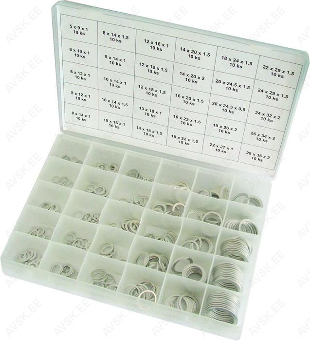 Komplektis 30 erinevat mõõtu. kõiki mõõte 10 tk. Alumiinium. Anduritele. õlikorkidele.