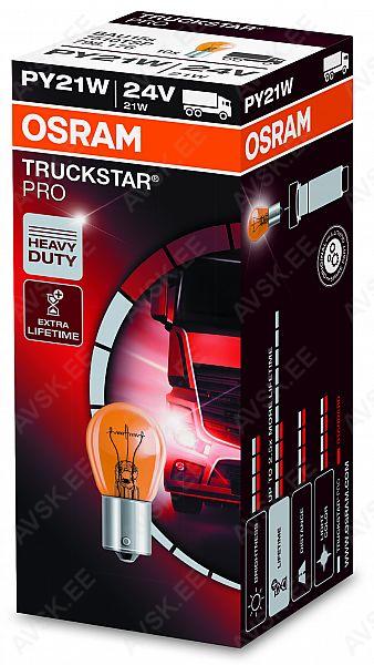 OSRAM Truckstar PRO seeria BAU15s PY21W halogeenpirn. Erakordse kvaliteediga pirn. mis on turvaline ning väga vastupidav. Truckstar PRO pirnid on kuni 100% eredamad kui tavapirnid ning kaks korda pikema elueaga tänu parandatud vibratsioonikindlusele.