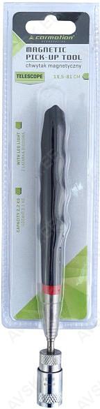 Efektiivne ja praktiline teleskoop magnet-tõstik LED valgustusega. Tavaliselt mutrid. poldid. seibid kukuvad raskesti ligipääsetavatesse kohtadesse. Tavalise magnettõstikuga saab neile küll ligi. kuid täpsemalt ei näe kuskohas asuvad. Tänu LED valgustusele on tõsteotsa esine valge. võimalik täpselt detailini suunata. Min pikkus 195 mm. max pikkus 810 mm. Tõsteotsa läbimõõt 15 mm. Tõstejõud 2.2 kg.