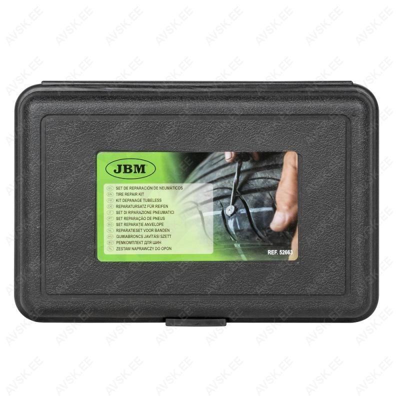 Rehviremondi komplekt. mille abil saab parandada torkeaugu tagajärjel tühjenenud rehvi. Komplekt sisaldab rasvanööre augu õhutihedaks muutmiseks. torkeava puhastusfreesi. rasvanööri paigaldajat. lõikurit ja paigaldusainet. Tooted pakitud korralikku plastkarpi.