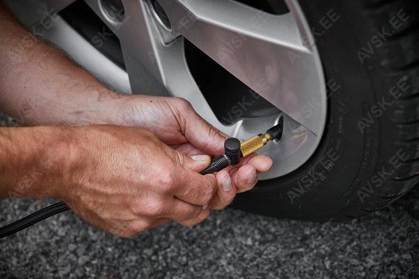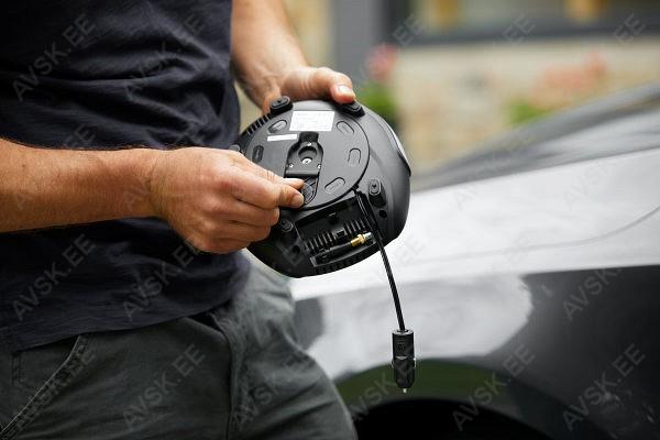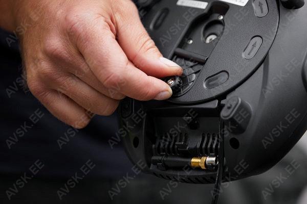 OSRAMi analoog displeiga kompressor. Suur on/off klahv. Mugavaks kasutuseks on seadmel 3 meetrine juhe sisse-/väljakerimismehhanismiga. Lisaks tuleb kaasa 3-adapterit jalgrattakummide. pallide jne täis pumpamiseks.