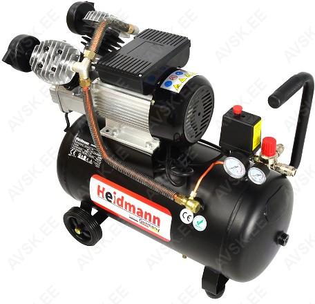 Tuntud Saksa kaubamärgilt. 2-kolviga õlikompressor "Heidmann" V-mootoriga. Sobib kodusesse majapidamisse või hobigaraazi. Töörõhu reguleerimine rõhureduktoritega. Kiirühendus lihtsustab lisavarustuse kasutamist. Lisamanomeeter paagirõhu näitamiseks. Tagasilöögiklapp. Kondensaadi väljalaske ava ja õlitaseme kork(klaas). Kerge manööverdusvõime tänu stabiilsetele ratastele ja käepidemele.