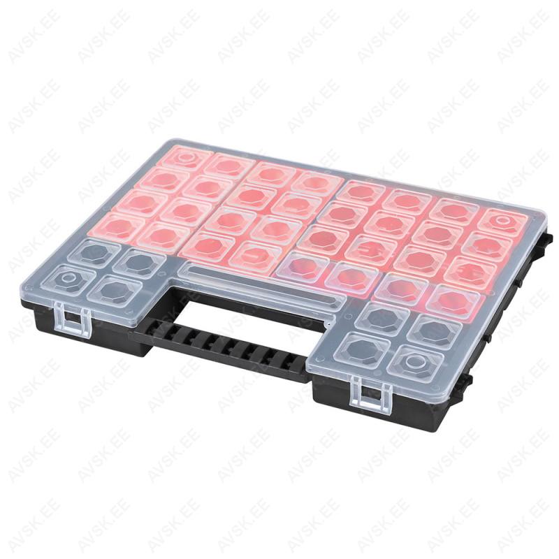 Ящики для инструментов, -сумки и -ремни5102050100250500<<12345>>—VaikimisiOdavamad enneKallimad enneKoodi järgi A ... ZKoodi järgi Z ... ANime järgi A ... ZNime järgi Z ... AKategoorias tooteid 4963600 PLASTKARP 23 LAHTRIGA 443X317X80MM ARTPLASTAV0005575521,00 €- +Lisa korviПодробнееValmistatud löögikindlast polüstüreen ja polüpropüleen plastist. Ilmastiku. õli ja keemiakindel. Ei vaja komplekteerimist. Plast on korduvkasutatv ja vastab REACH nõuetele.5-OS. 3060 LAHTRITEGA PLASTKARPIDE KOMPL. 2X3100+3200+3300+3400 ARTPLASTAV0005575730,45 €- +Lisa korviПодробнееValmistatud löögikindlast polüstüreen plastist. Ei vaja komplekteerimist. Plast on korduvkasutatv ja vastab REACH nõuetele.515-OS. TÖÖRIISTAKÄRU TÖÖRIISTADEGA RACINGLINE 7-SAHTLIGA PUNANE/MUST KS TOOLSAV000563721 265,25 €- +Lisa korviПодробнееRACINGline 7-sahtliga tööriistakäru koos tööriistadega. Sahtlid laagritel ja lukustatavad. Käru on pealt kaetud tugeva ABS plastist paneeliga. külg- ja tagaseinad on perforeeritud tööriistade riputamiseks. Suured 125 mm läbimõõduga rattad. millest 2 tk piduritega ja keeravad. Käru on komplekteeritud 4-tööriistapaneeliga ja lisaks on kaasas otsikute (bit) komplekt plastkohvris. Komplekt sisaldab: 1...215-OS. TÖÖRIISTAKÄRU TÖÖRIISTADEGA RACINGLINE 7-SAHTLIGA PUNANE/MUST KS TOOLSAV00058251980,70 €- +Lisa korviПодробнееTugev ja vastupidav RacingLine tööriistakäru. Terasplaadi paksus 0.9 mm. külgedel avad tööriistade riputamiseks. sahtlid kahesüsteemse lukustusega. kõik sahtlid koondlukustatavad. Laagritel. PU kaitsmed käru nurkades. ABS plastist kate sektsioonidega. Ø 125 mm rattad millest 2 tk piduriga. pulbervärvitud. Komplekt sisaldab: külglõiketangid 180 mm näpitstangid külglõikuriga 180 mmlapikkruvikeeraja ...TÖÖRIISTAKÄRU TAGASEIN PERFO. HÕBEDANE KS TOOLSAV0006072065,10 €- +Lisa korviПодробнееTööriistakäru külge monteeritav perforeeritud tagasein. 10x10 mm ruudukujuliste avadega. 38 mm sammuga. Koosneb omavahel liidetavatest kahest 700x450 mm paneelist. Sobib Ultimate ja MASTERline tööriistakärudele.5700 TÖÖRIISTAKAST PLAST 580X280X250MM ARTPLASTAV0006078034,65 €- +Lisa korviПодробнееModernse disainiga tööriistakast. millel on vastupidav konstruktsioon ja süvisesse keeratav käepide. Valmistatud taaskasutatavast löögi-. õli- ja keemiakindlast polüpropüleen plastist. Pestav. ei ima niiskust. Vastab REACH nõuetele.4-OS. 3060 LAHTRITEGA PLASTKARPIDE KOMPLEKT 242X188X69MM ARTPLASTAV0006256010,50 €- +Lisa korviПодробнееValmistatud löögikindlast polüstüreen plastist. Ei vaja komplekteerimist. Plast on korduvkasutatv ja vastab REACH nõuetele. 2x3100+3200+3300.TÖÖRIISTAKAST 250X210X70MM TRIUMFAV0006291211,55 €- +Lisa korviПодробнееPlastist kast lukustuskõrvadega. Sobilik erinevate tööriistade ja tarvikute säilitamiseks.TÖÖRIISTAKÄRU TAGASEIN PERFO. MUST KS TOOLSAV00064907117,60 €- +Lisa korviПодробнееTööriistakäru külge monteeritav perforeeritud tagasein. 10x10 mm ruudukujuliste avadega. 38 mm sammuga. Koosneb omavahel liidetavatest kahest 700x450 mm paneelist. Sobib Ultimate ja MASTERline tööriistakärudele.PIRNIKAPP TÜHI ILMA LUKUTA OSRAMAV00068583135,45 €- +Lisa korviПодробнееPIRNIKAPP TÜHI ILMA LUKUTA OSRAMRENSI STEND TÜHIAV0007074565,10 €- +Lisa korviПодробнееRENSI STEND TÜHIADR KOHVERAV0007129794,50 €- +Lisa korviПодробнееSisaldab kõike ettenähtut (ka Saksamaa. Benelux jne). Helkurribaga neoonvest. kaitseprillid. kaitsekindad. kummisäärikud. kaitseülikond. vahetatava elemendiga respiraator. silmapesuvahed. lamp. labidas. kanalisatsiooni augu kate.MAKPAC PLASTKOHVER NR. 1 MAKITAAV0004085539,90 €- +Lisa korviПодробнееMõõdud 395x295x110 mm.MAKPAC PLASTKOHVER NR. 2 MAKITAAV0004084547,25 €- +Lisa korviПодробнееMõõdud 395x295x163 mm.MAKPAC PLASTKOHVER NR. 3 MAKITAAV0004078456,70 €- +Lisa korviПодробнееKohvri mõõdud 395x295x215 mm. Vastupidavast plastikust. kohvrisisud võimalik eraldi tellida tööriista põhiselt.TRIUMF PRO TRUCK TÖÖRIISTAKÄRU SAHTLI VARU LAAGERSIIN (2TK)AV0004065917,85 €- +Lisa korviПодробнееTriumf tööriistakärude varusiin.KAUBIKU MOODULSÜSTEEM. SEINAKINNITUS KAHE PAINDEGA SIMAV000741794,20 €- +Lisa korviПодробнееTsingitud terasest detail moodulite kinnitamiseks. Laius 40 mm. paksus 2.5 mmKAUBIKU MOODULSÜSTEEM. SORTIMENDI RIIUL 3-VAHEGA 1014X360X195 SIMAV00074251137,55 €- +Lisa korviПодробнееEraldavate vaheseintega riiul. Tootekoodi lõpp näitab ära lahtrite arvu. Võimalik kinnitada otse moodulitele. Pulbervärvitud teras. Tehniline info: Pikkus 1014 mmSügavus 360 mmKõrgus 195 mmLahtreid 4Kaal 8.0 kgKAUBIKU MOODULSÜSTEEM. SORTIMENDI RIIUL 4-VAHEGA 1267X360X195 SIMAV00074253166,95 €- +Lisa korviПодробнееEraldavate vaheseintega riiul. Tootekoodi lõpp näitab ära lahtrite arvu. Võimalik kinnitada otse moodulitele. Pulbervärvitud teras. Tehniline info: Pikkus 1267 mmSügavus 360 mmKõrgus 195 mmLahtreid 5Kaal 9.3 kgKAUBIKUTE MOODULSÜSTEEM. POOLIKU UKSEGA. PEALT AVATUD 1014X260X165MM SIMAV00074255145,95 €- +Lisa korviПодробнееAlla avatava uksega riiul. Võimalik kinnitada otse moodulitele. Pulbervärvitud teras. Tehniline info: Pikkus 1014 mmSügavus 260 mmKõrgus 165 mmKaal 8.5 kgKAUBIKUTE MOODULSÜSTEEM. MOODUL RIIUL MADAL UKS 1267X360X195AV00074256215,25 €- +Lisa korviПодробнееAlla avatava uksega riiul. Võimalik kinnitada otse moodulitele. Pulbervärvitud teras. Tehniline info: Pikkus 1267 mmSügavus 360 mmKõrgus 195 mmKaal 13.2 kgKütusevoolikute stend 3,2/4/5/6/8/10 7,5mAV00032119207,70 €- +Lisa korviПодробнееVooliku Ø 3,2/4/5/6/8/10 7,5mLADUSTUSKARP 100X95X50MM. NR101. PP ARTPLASTAV000746222,10 €- +Lisa korviПодробнееTugev ja koormustele vastupidav karp. mis on val