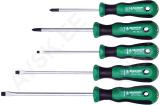 Komplektis rist- ja lapikkruvikeerajad. Aastatepikkuse arendustöö tulemusel on loodud üks parimaid 2K komposiitmaterjalist käepidemeid. Käepide annab kasutajale lisa keeramisjõu ning samas tagab käe ohutuse. Kruvikeerajad on valmistatud MoSiV eriterasesegust. mis on tugev ja vastupidav. Ideaalne profikasutamiseks. Kruvikeeraja tööots on laser-termotöödeldud. Pappkarbis. Valmistatud Slovakkias. Triumf tehases.