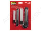 Suure noa mõõtmed: pikkus 155 mm, tera laius 18 mm Väikese noa mõõtmed: pikkus 130 mm, tera laius 9 mm Iga noa jaoks kolm lisatera
