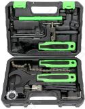 Tööriistu saab kasutada tõukeratta. jalgratta jne remonttöödel. Komplektis kuuskantvõtmed. ketipaigaldaja (lülide neetija). hülss lukustusmutri keeramise tangid (universaalsed). rehvi paigaldamise heeblid (3 tk). Torx-võti T27 jne. Korralikus plastkohvris.