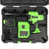 Harjavaba mootoriga aku silikoonipüstol 20 V. LED valgustusega. Survetundlik päästik. Reguleeritav massi väljastuskiirus. Anti-drip tilgavaba süsteem tagab pärast töö lõpetamist. et tuub ei jää pinge alla ja tihendusmass ei väljuks tuubist. Terasest surukolb ja mehhanism. Alumiinium-eriplastist korpus. Kummikattega ergonoomiline pidemeosa. Koos aku. akulaadija ja kandmiskohvriga. Garantii 12 kuud.