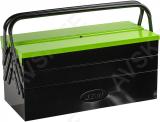 Klassikaline. paksemast terasplekist valmistatud 2 tasandiga. 5 sektsiooniga tööriistakast. Tööriistakastil on topelt kandmiskäepide tänu millele saab kastis transportida ka raskemaid tööriistu. Kaaneosal ava tabalukuga lukustamiseks. Õli- ja keemiakindel värv. Pikkus 450 mm. laius 200 mm. kõrgus 220 mm. Kaal 4.5 kg.