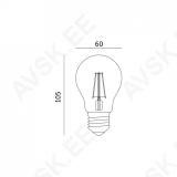 LED tehnoloogial pirn. mis säästab energiat. FILAMENT tüüpi. pirni kuju. välimus ja valgusvihk on võrreldav klassikalise hõõgniidiga! Valgustuse nurk 360°. Premium seeria. Töökindel ja pikk eluiga.
