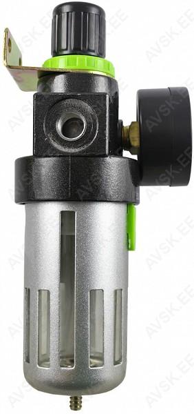 Filter-regulaator trassiõhule. Alumiiniumist korpus. polükarbonaadist kogumisanum 150 ml. mis kaitstud alumiiniumkattega. Rõhumanomeetriga. Max töörõhk 9.5 bar. reguleerimisvahemik 0.5-8.5 bar (NB! suruõhutööriistadel soovitame 6.3 bar). 1/4" keermega liideseavad.
