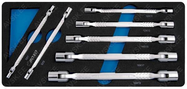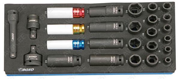 Tööriistad asuvad pehmetes "EVA"-paneelides. Paneelide pesa on teist värvi, mis aitab märgata puuduva tööriista kuju. - Pitkät 3/8" hylsyt 8, 9, 10, 11, 12, 13, 14, 15, 16, 17, 19, 21, 22, 24mm Tööriistad asuvad pehmetes "EVA"-paneelides. Paneelide pesa on teist värvi, mis aitab märgata puuduva tööriista kuju. -Pitkät 1/2" hylsyt 10, 11, 12, 13, 14, 15, 17, 18, 19, 20, 21, 22, 24, 27, 30, 32mm Tööriistad asuvad pehmetes "EVA"-paneelides. Paneelide pesa on teist värvi, mis aitab märgata puuduva tööriista kuju. 26-Osainen 1/2" konehylsysarja sisältää:- Konehylsyt 8, 9, 10, 11, 12, 13, 14, 15, 16, 17, 18, 19, 21, 22, 24mm- Pitkät konehylsyt 17, 19, 21, 22, 24mm- Pyöränmutterihylsyt 17, 19, 21mm- Konenivel- Konejatkovarsi 125mm- Konemuuntokappale 3/4" -> 1/2" Tööriistad asuvad pehmetes "EVA"-paneelides. Paneelide pesa on teist värvi, mis aitab märgata puuduva tööriista kuju. -Hylsyt 4, 4.5, 5, 5.5, 6, 7, 8, 9, 10, 11, 12, 13, 14mm-Pitkä hylsyt 4, 4.5, 5, 5.5, 6, 7, 8, 9, 10, 11, 12, 13, 14mm-72-hampainen räikkäväännin-Ruuvitaltta 1/4? neliövääntiöllä-T-liukuväännin 115mm-Yleisnivel-Jatkovarret 50, 100, 150mm-Kuusiokoloavaimet, joissa pidemmässä päässä ... Tööriistad asuvad pehmetes "EVA"-paneelides. Paneelide pesa on teist värvi, mis aitab märgata puuduva tööriista kuju. Sisältää: - 1/4" Hylsyt E4, E5, E6, E7- 1/2" Hylsyt E10, E12, E14, E16, E18, E20 - Torx silmukka-avaimet E6xE8, E10xE12, E14xE18, E20xE24- Torx avainsarja T10, T15, T20, T25, T27, T30, T40, T45, T50 Agila, Astra-G/H, Combo-C, Corsa-B/C/D, Meriva-A, Tigra-B Mootorid: X10XE, Z10XE, Z10 XEP, X12XE, Z12XE, Z12 XEP, Z14XEL, Z14XEA 46-osaline padrunvõtmete komplekt, kohvris. Komplektis sisaldub: TORX T10, T15, T20, T25, T30, T40. Kuuskant: 3/32", 1/8", 5/32", 3/16", 7/32", 1/4", 9/32", 5/16", 3/8". Kruvikeerajad 4; 5.5mm. Ristpea kruvikeerajad PZ1, PZ2, PZ3. Padrunid 5/32", 3/16", 7/32", 1/4", 9/32", 5/16", 11/32", 3/8", 7/16", 15/32", 1/2", 9/16". 72-hambaline knarre. Pikendused 50mm, 100mm, 150mm (painduv), T-rist, Adapter...
