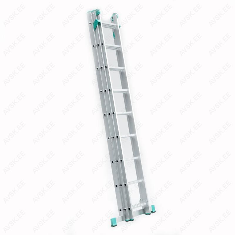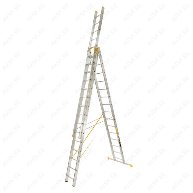 Kolmeosaline alumiiniumist universaalne mitteprofessionaalne redel HELPER, astmete arv 3 x 9, üldpikkus 5,69m , laius 454 mm. Mõõdud vt joonist: A Transpordipikkus - 2,58 mB 3-osa teleskooppikkus - 5,69 mH 3-osa teleskoopkõrgus - 5,39 mb A - vormi teleskooppikkus - 3,98 mh A - vormi teleskoopkõrgus - 3,78 mF Stabilisaatori pikkus - 800 mmR Astmete arv - 3 x 9Kandevõime 150 kgKaal 13,7 kg