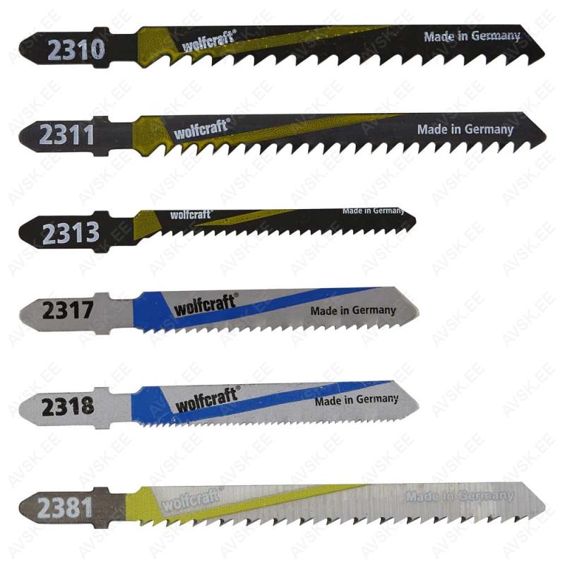 Suitable for material Very suitable Softwood, Plywood, Chipboard, Wood core chipboard, MDF, Laminate, Plastic, Non-ferrous metal, Sheet steel, Aluminium Technical data Shank version T-shank Scope of delivery 3 HCS jigsaw blades, cutting depth 8 - 50 mm, fast rough cut, tooth spacing 4 mm 2 HCS jigsaw blades, cutting depth 50 mm, rough cut, tooth spacing 3 mm 2 HCS jigsaw blades, cutting depth 4 - ... Suitable for material Very suitable Softwood Technical data Shank version T-shank Material HCS Scope of delivery 2 HCS jigsaw blades, cutting depth 5 - 40 mm, tooth spacing 2.5 mm 3 HCS jigsaw blades, cutting depth 8 - 40 mm, fast very rough cut, tooth spacing 4 mm 2 HCS jigsaw blades, cutting depth 4 - 15 mm, curved cut, tooth spacing 2 mm 3 HCS jigsaw blades, cutting depth 6 - 40 mm, rough cut, ... Suitable for material Very suitable - Wood, Wooden beams, Tree cutting, Plastic, Sheet steel, Non-ferrous metal Technical data Material Chrome-vanadium steel High-Speed Steel (Hss) Scope of delivery 1 CV sabre saw blade, cutting depth 5 - 100 mm, fine cut, tooth spacing 2.5 mm 1 CV sabre saw blade, cutting depth 20 - 180 mm, very rough cut, tooth spacing 8.5 mm 1 HSS sabre saw blade, cutting depth... Suitable for material Very suitable Hardwood, Plywood, Wood core chipboard, Plastic-coated chipboard, laminate, parquet, Wood with nails Technical data Shank version T-shank Tooth shapes Conically ground Cut quality Clean cuts Scope of delivery3 BIM jigsaw blades, cutting depth 30 mm, fine clean cut, tooth spacing 2.5 mm, toothed length 75 mm, total length 100 mm 2 HCS jigsaw blades, cutting depth... Suitable for material Very suitable Hardwood, Softwood, Construction timber, Chipboard, Laminate, Sheet steel Properties jigsaw blade set, 12 pcs., T-shank, for interior work 10 HCS jigsaw blades 1 HSS jigsaw blade 1 pocket knife Technical data Shank version T-shank Scope of delivery 2 HCS jigsaw blades, cutting depth 8 - 65 mm, very rough cut, tooth spacing 4.3 mm 2 HCS jigsaw blades, cutting dep... Suitable for material Very suitable Softwood, Sheet steel, Non-ferrous metal, Aluminium, Stainless steel (Inox) Technical data Shank version U-shank Scope of delivery 3 HCS jigsaw blades, cutting depth 8 - 40 mm, very rough cut, tooth spacing 4 mm 2 HCS jigsaw blades, cutting depth 6 - 40 mm, rough cut, tooth spacing 3 mm 2 HCS jigsaw blades, cutting depth 4 - 15 mm, curved cut, tooth spacing 2 mm...