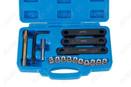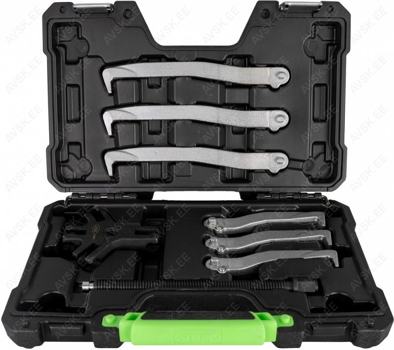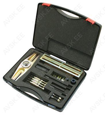 Universaalne diiselpihusti tõmmitsa komplekt. Võimaldab kinnijäänud pihusteid eemaldada plokikaant maha võtmata. Mõnede V-mootorite puhul ei saa auto peal kasutada ruumi puuduse tõttu. Komplekt sobib: * Mercedes: OM611, OM612, OM613, OM628, OM629, OM642, OM646, OM647, OM648 * Peugeot, Citroen, Fiat, Lancia, Suzuki : DV6 *Ford: 1,6 TDCi (G8DA, G8DB, HHDA, HJA, HHJB) *VW-Audi:2,5 / 2,7 / 3,0 V6 Tdi ...