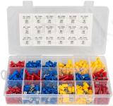 Enamlevinud autonduse juhtmeotsade komplekt. punased. sinised. kollased. Pistikud. pesad. silmused ja jätkamistorud.