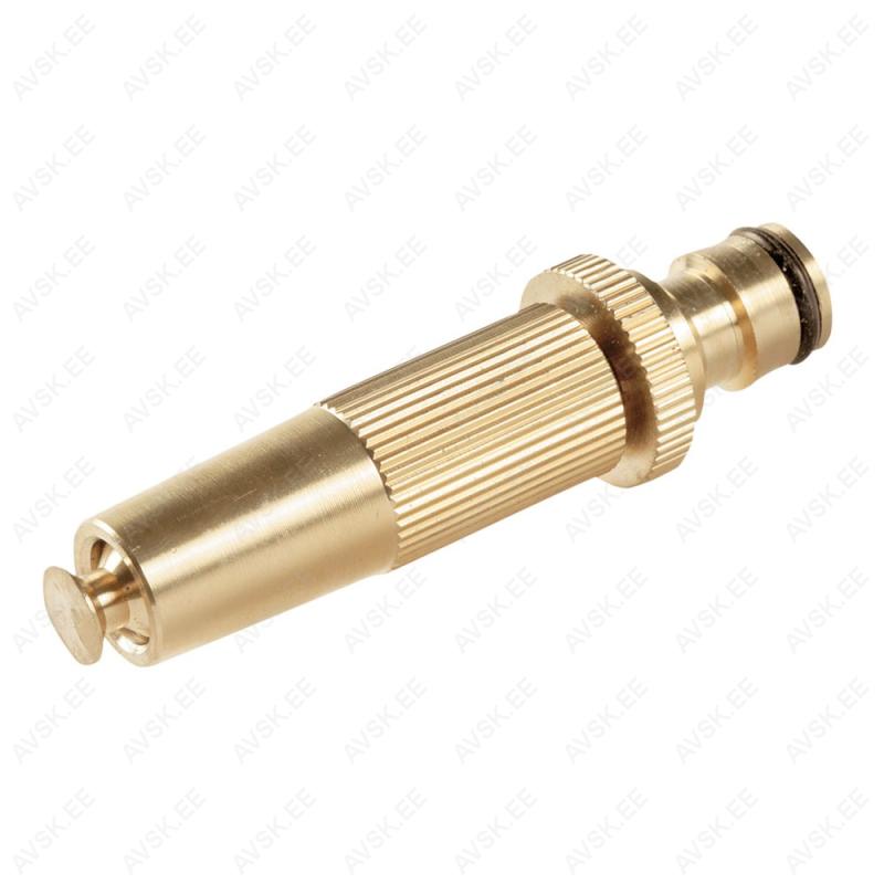 The adjustable brass spray nozzle is a durable and versatile gardening tool, suitable for both watering and cleaning. The water jet can be easily adjusted from a soft mist to a strong jet, providing the necessary water flow for different tasks. The high-quality brass construction ensures rust resistance and long-lasting performance. It fits standard garden hoses and allows for quick, tool-free installation.