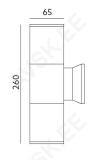 Pinnapealse kinnitusega välisseinavalgusti. Valgustab üles ja alla. Vastupidavast alumiiniumist. Valguselemendid ei sisaldu komplektis.