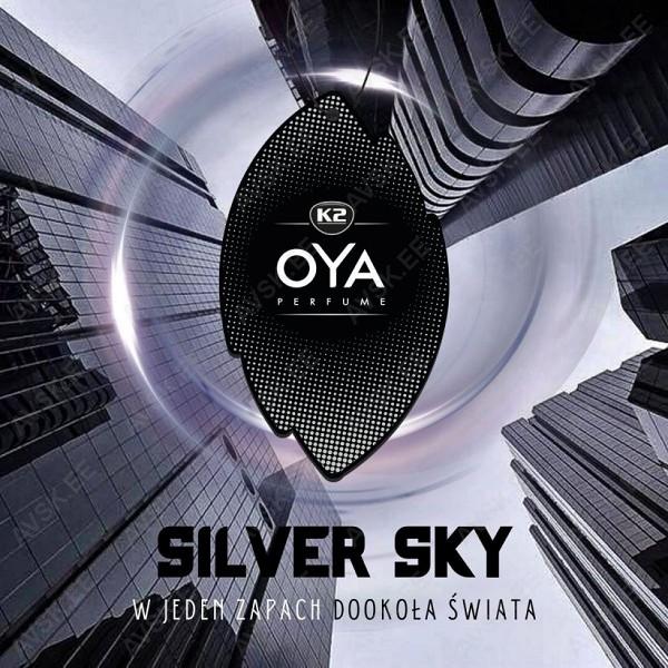 K2 OYA Silver Sky on maskuliinne. võrgutav ja ahvatlev lõhnakompositsioon. Täis jõudu. enesekindlust ja hoolimatut elegantsi. Legendaarse Briti agendi kujust inspireeritud kompositsioon. Nagu teda. iseloomustab teda galantne võlu ja rafineeritus. Kui soovid tunda end kangelasena. võrgutades meeli puidunootidega. milles on tunda mangot ja bergamoti. täida auto sisemus elegantsiga ja jäta unustamatu mulje kõigile. kes sinu kõrval sõidavad.
