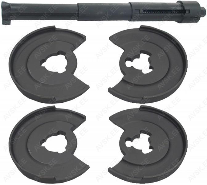 Designed for pulling drive shafts into hubs on Audi, BMW, Fiat, Ford, Mercedes-Benz, Peugeot, Porsche, Renault, Subaru, Vauxhall/Opel and Volvo Adaptors include: M16 x 1.5 for Subaru, M20 x 1.5 for Volkswagen Beetle, Touareg and Porsche Cayenne, M22 x 1.5 for BMW E30, M24 x 1.5 for BMW E36 and Mercedes-Benz W203, M27x 1.5 for BMW E32 | E34 | E38 | E39 | X5 and M30 x 1.5 for BMW E32 | E36 | E34 Add...