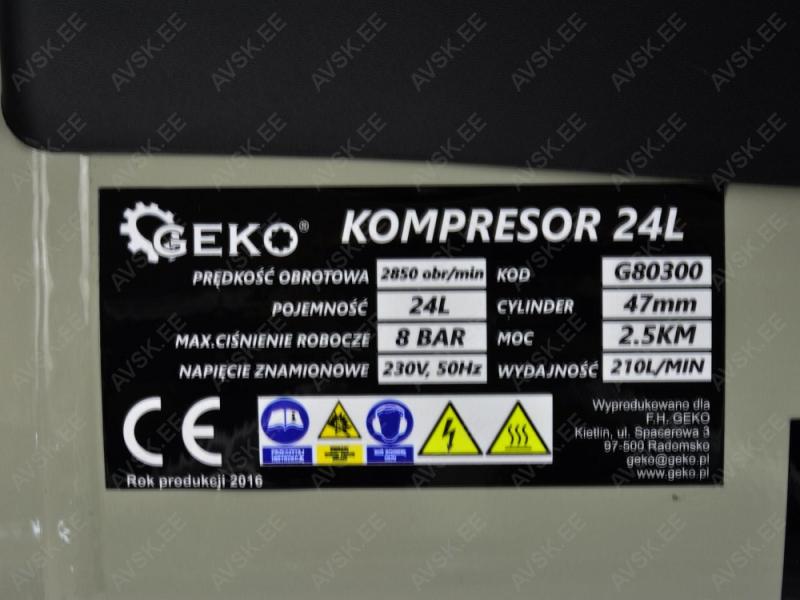 KOLBKOMPRESSOR 24L PAAK. 8BAR. 1.9KW 230V GEKO