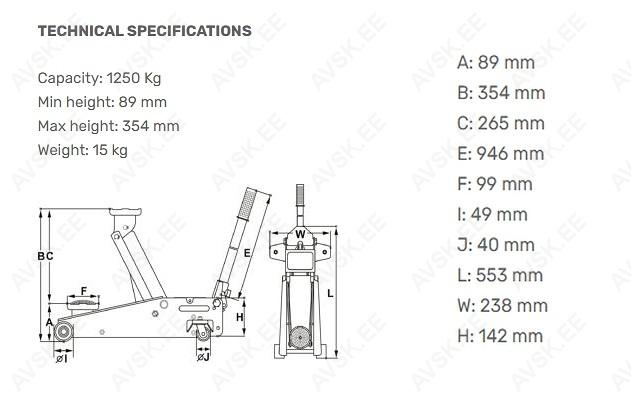 Kerge alumiiniumraam. Kaal 15 kg. Spetsiaalsed metallsüdamikuga ja polüuretaanist kattevööga ekstralaiad rattad. Vaikne ja libisemiskindel liikumine. ei lõhu garaaži põrandat. Kiire kahe hüdraulilise silindriga süsteem. Auto kere vigastuste vältimiseks on käepide kaetud pehmest kummist kaitsekattega. Tõstekäpal kummist pehmenduspadi. Tugevdatud kardaanülekanne käepidemest hüdrosilindri juhtimiseks.