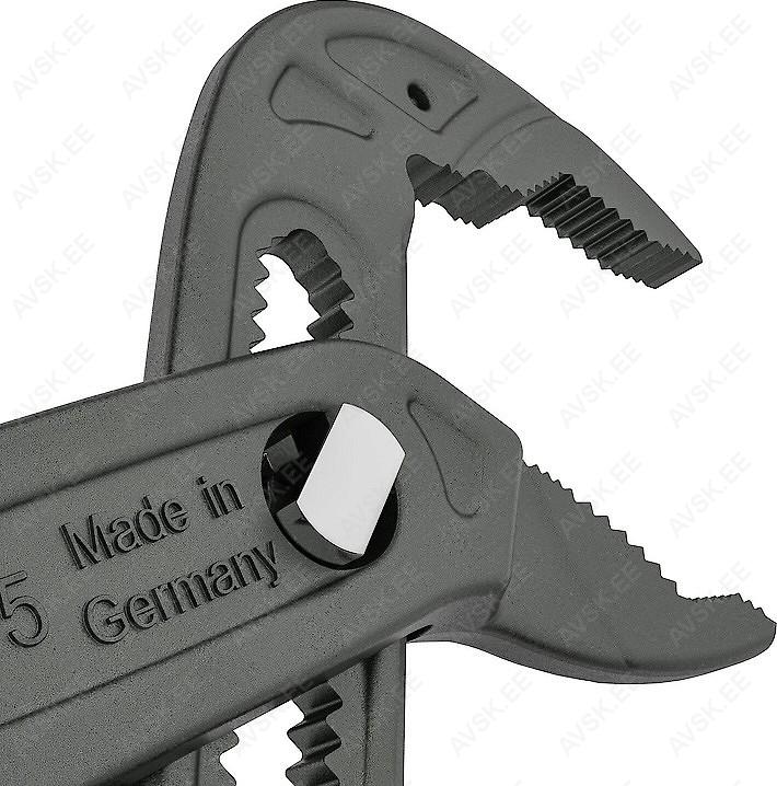 Valmistatud sepistatud CroMo-st. Fosfaaditud pinnatöötlus. Libisemiskindla 2K-plastkattega pidemeosa. Fikseeruva hammastusega reguleerimine. Lukustuse vajutamiseks ei pea kasutama kahte kätt. Made In Germany.