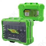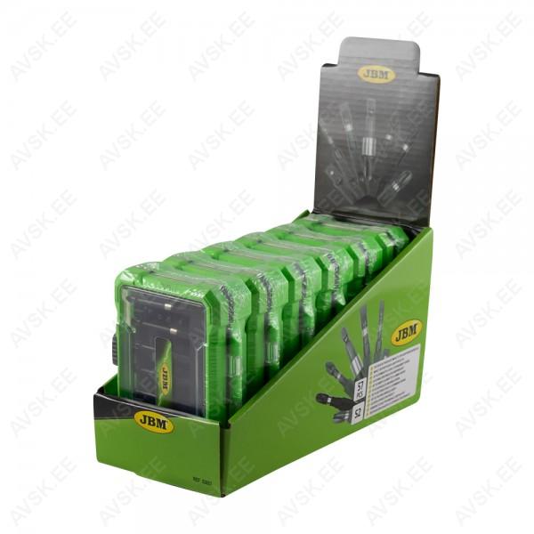 Mugavas plastist kohvris 1/4" kuuskant otsikud. Lühikesed 25 mm ja pikad 65 mm. Sisaldab lapikotsad. PH-ristotsad. PZ-ristotsad. Torx otsad ja avaga Torx otsad. Keeramisadapter 60 mm.