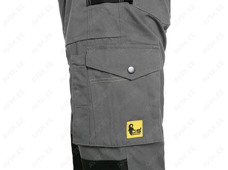 Traksipüksid STRECH tootesarjast. 98% puuvill. 2% elastaan. 250 g/m2 (kanga tihedus) on hingavast. venivast. kergest ja mugavast kangast. mis annab kasutajale palju parema liikumisvabaduse. 9 funktsionaalset taskut + haamriaas + pliiatsi-. mõõdulindi-. telefoni- ja noatasku. Võtmete kinnitamiseks aasad. Reguleeritavad traksid. ees tõmblukk esiliistuga. Sees pool veniv pehmest materjalist värvliosa. Kulumiskindluse suurendamiseks on enim kuluvatel kohtadel nagu põlveosadel ja taskuäärtel kasutatud venivat ja vastupidavat tugevat polüesterkangast 600D. Liikumismugavust annab juurde venivast kangast kiil jalgevahel. Põlvekaitsete taskud tööriietel. Dekoratiivsed helkurribad põlvedel ja tagaosas. Võimalus püksisääri pikendada 3 cm võrra.