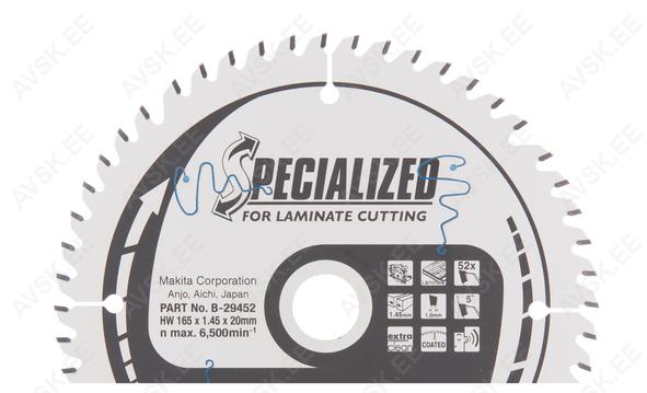 SAEKETAS 165X20X1.45MM 52T 10° LAMINAAT. EXTRA CLEAN CUT. VAIKNE. SPECIAL MAKITAAV0005934179,53 €- +Add to cartMDF-i/laminaadi lõikamiseks.Tera läbimõõt 165 mmAva suurus (võlli läbimõõt) 20 mmSaetee 1.5 mmHammaste arv 52 Tera nurk 5° Tera tüüp Special Ask for more information about the productName:e-mail:Comment: