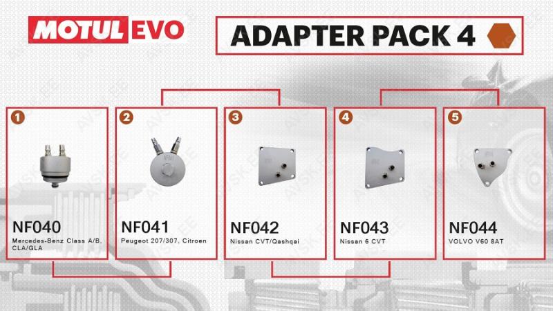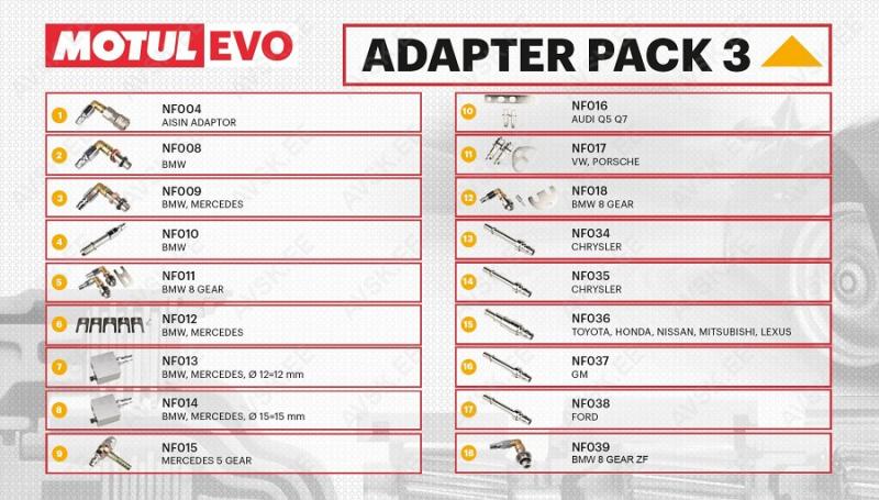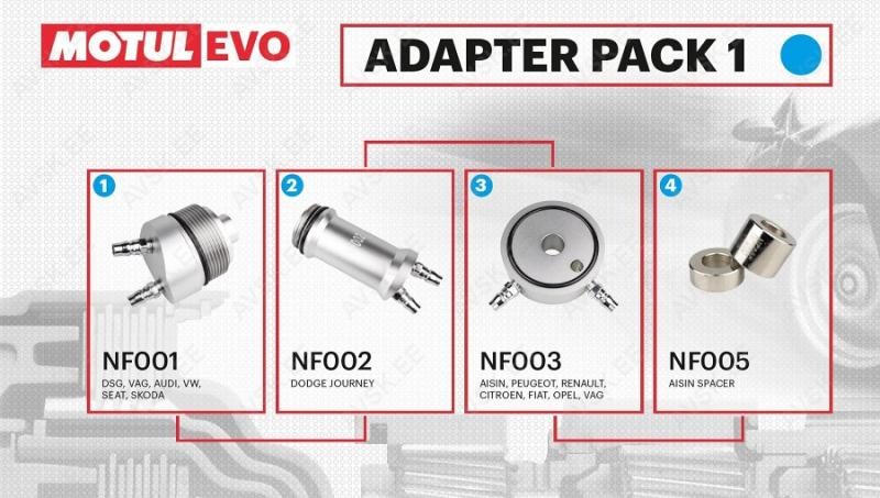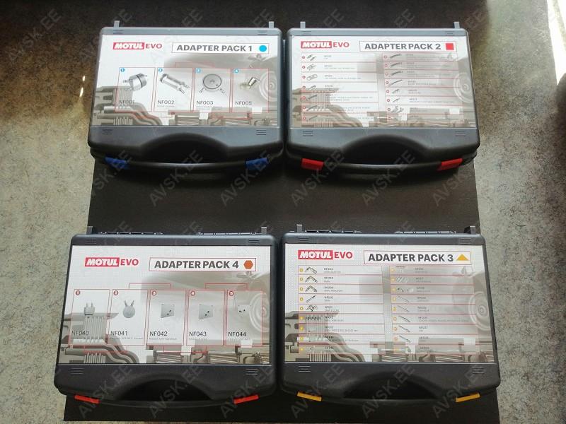 MOTUL EVO käigukasti hooldusseadme adapterite komplekt. Komplektiga katab pea kõik Eesti teedel liikuvad sõidukid. MOTUL-EVO keskkonnast näeb auto margi ja mudelikohaselt. millist adapterit tuleks kasutada. kuhu käigukasti küljes tuleb ühendada seadme voolikud. millist õli kasutada jne.