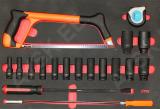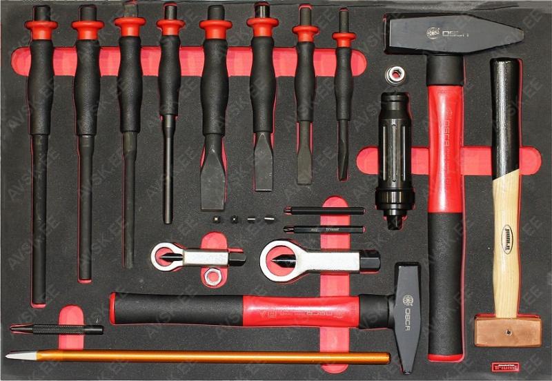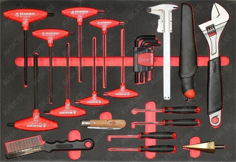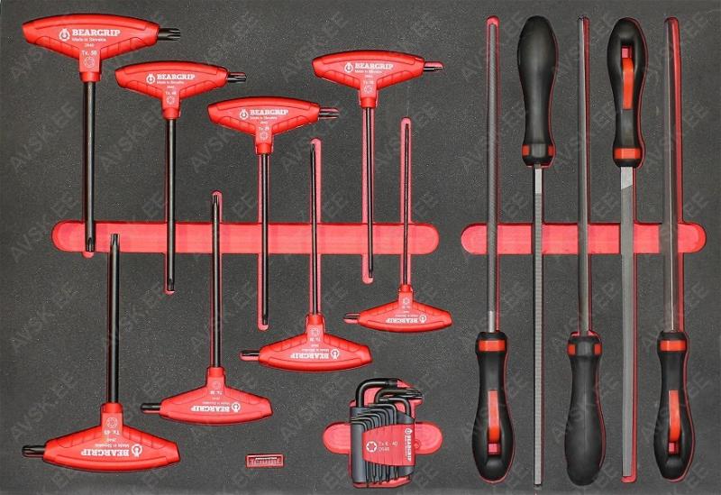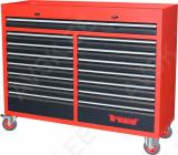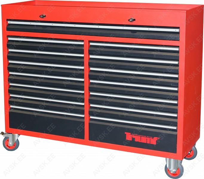 Pulbervärvitud. 15-sahtliga tööriistakäru koos tööriistadega. Tööriistad asuvad pehmetes “foam” paneelides. “Foam” pesa põhi on teist värvi. mis aitab visualiseerida puuduvat tööriista ja selle kuju. 12 sahtlit on täidetud tööriistadega. Tööriistakäru sahtlid asuvad rull-laagritel. Kärul on suured laagritel HD rattad. millest 1 on piduriga ja 2 pööravad. Kapi pealisosa on kummikattega. Kuigi kapp on suur. on ta kergelt liigutatav. Sahtli sisemõõt 580x390 mm. suur sahtel 1220x390 mm. Valmistatud Euroopas. Käru mõõdud p/l/k 1320x475x1095 mm.