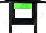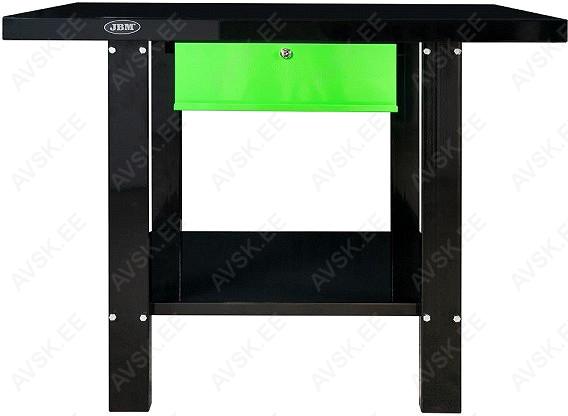 Lihtne ja praktiline töölaud töökotta ja/või kodugaraazi. Valmistatud tugevast terasest. Ühe sahtliga. Keemia- ja õlikindel värvkate. Sahtel on võtmega lukustatav. Laius 1100 mm. sügavus 640 mm. kõrgus 865 mm. Kaal ca 50 kg.