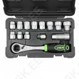 Suurepärane ja väga hea hinna-kvaliteedi suhtega läbivate padrunite komplekt. Läbiv padrun annab kasutajale võimaluse avada mutreid. millest poldi keermesosa ulatub pikalt üle. Samas millele ei saa ligi näiteks silmus-lehtvõtme või isegi pika padruniga. Näitena võib tuua auto amortisaatorid. Tööriistad on valmistatud kvaliteetsest CrV eriterasest. Plastkohvris.