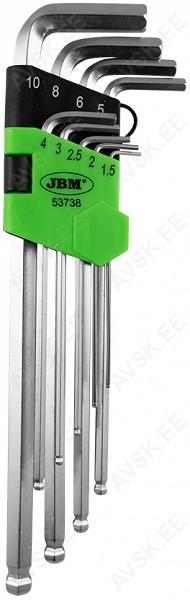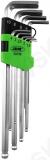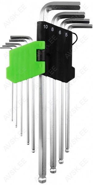 Hobikasutamiseks või väiketöökotta mõeldud L-kuuskant võtmed. Kuulotsaga. ekstra pikk versioon. Plasthoidikus.