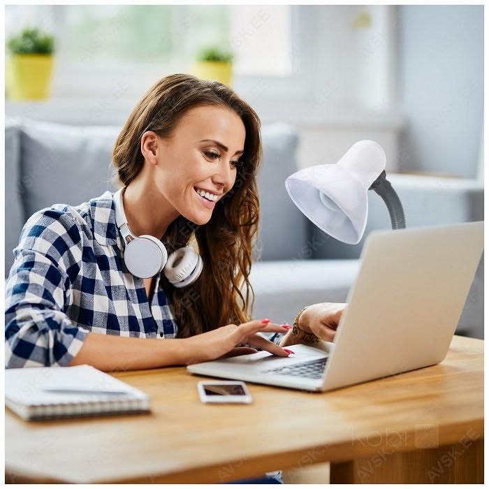 Lülitiga laualamp. Metallist jalaosa ja kuppel. Reguleeritav kaelaosa valgusvihu soovitud suunamiseks. Disainitud LED A++ pirnidele. max 40 W (valgusallikas tuleb eraldi juurde osta).