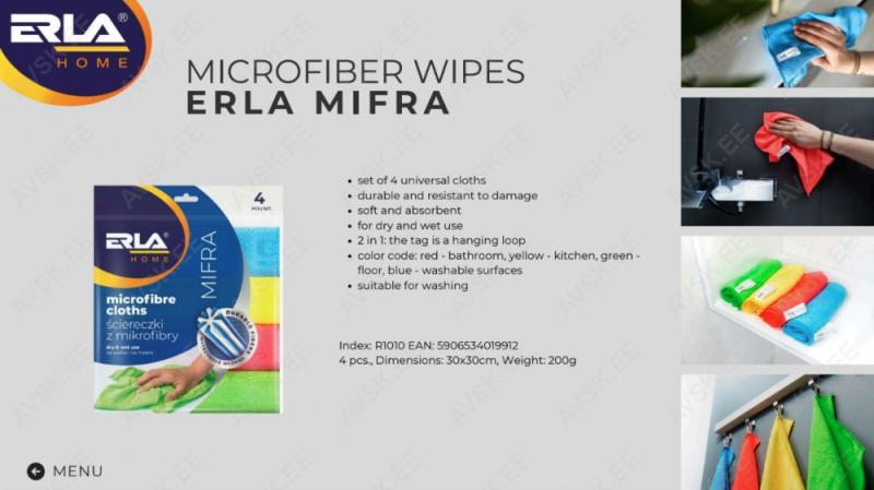 ERLA MIFRA MIKROFIIBER PUHASTUSLAPID 30X30CM 4TK