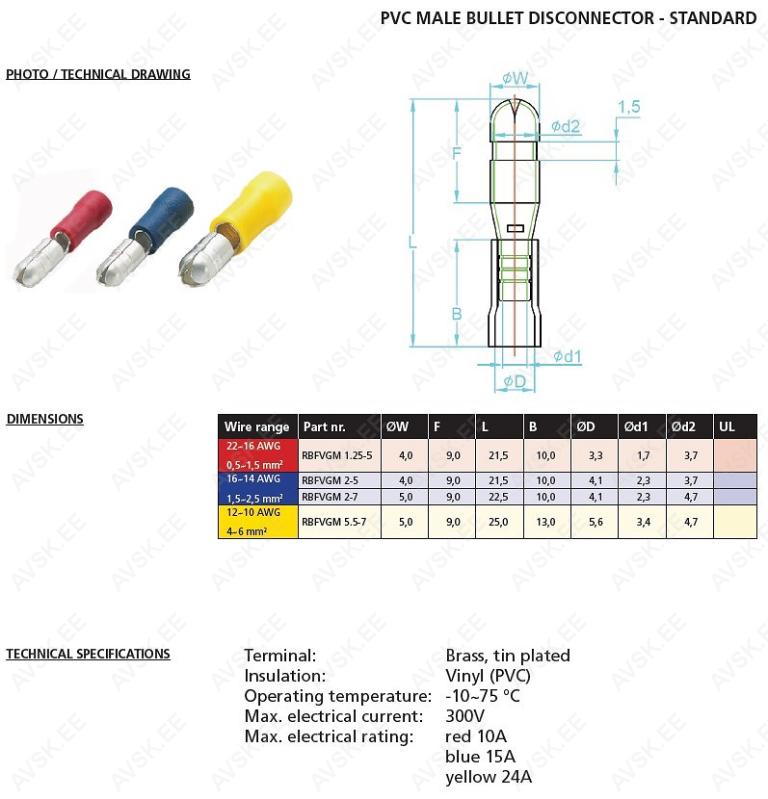 Pressitav PVC isolatsiooniga juhtmeotsik. millel on hea temperatuuritaluvus ja korrosioonikindlus.
