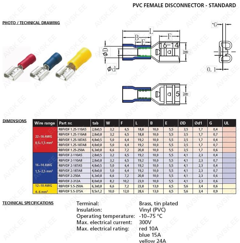 Pressitav PVC isolatsiooniga juhtmeotsik. millel on hea temperatuuritaluvus ja korrosioonikindlus.