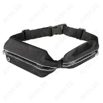 Must sportlik kaheosaline vöökott, mis võimaldab eraldi asetada telefoni (max 6,5") ja nt võtmed, et vältida telefoni kriimustamist. Helkurkandid lisavad turvalisust. Auk kõrvaklapijuhtmele. Vee-/higikindel materjal ja lukud.