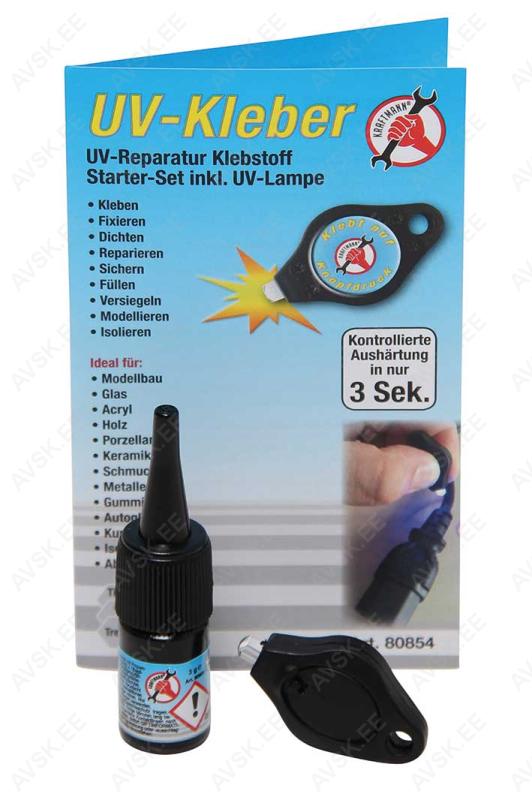 UV liim 3g, komplektis sisaldub ka UV lamp. UV lambi abil on võimalik reguleerida, kui kiiresti liim kuivab, mis tasemeni liim kuivab, kui elastseks liim kuivab. Sobib erinevate materjalide, nagu puit, metall, plastik, tekstiil, keraamika, kumm jne. liimimiseks. Lisaks on UV liimiga väga mugav parandada kaablite purunenud ühenduskohti. UV lamp võib kuivatada liimi juba 3 sekundiga. {Vaata tutvust...