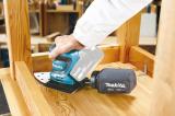 Saab kasutada augustatud abrasiivpaberit. Kompaktne. kerge ja mugava asukohaga sisse/välja lüliti võimaldavad töötada ühe käega. Tolmu kogumine läbi talla kogumissüsteemi tagab puhtama töökeskkonna. Suur kinnitushoob lihvimispaberi kiireks ja mugavaks paigaldamiseks. Elektriline pidur tagab kasutajal suurema ohutuse. Ergonoomiline käepide on kaetud libisemisvastase materjaliga. Tööriistal on takjakinnitusega tald. Tarnitakse ilma aku ja laadijata.