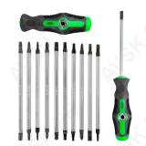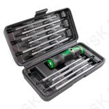 Ainulaadne kruvikeeraja - vahetatavad otsikud ja lisaks kasutatav T-peaga kruvikeerajana. Komposiidist pidemeosa. 2-poolsed pikad keeramisotsikud. 20 erinevat. Enamlevinud ristotsikud. lapikotsikud. Torx otsikud ja kuuskant otsikud. Plastkohvris.