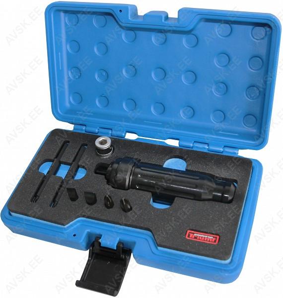 Komplekt sisaldab 1/2” adapterpead ja 5/16" otsikute hoidepadruniga pöördlöökpea kruvikeerajat.
