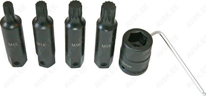6-OS. 3/4" PIKKADE 12-TÄHIK LÖÖKOTSIKUTE KOMPL. M12/M14/M16/M18 TRIUMF
