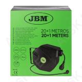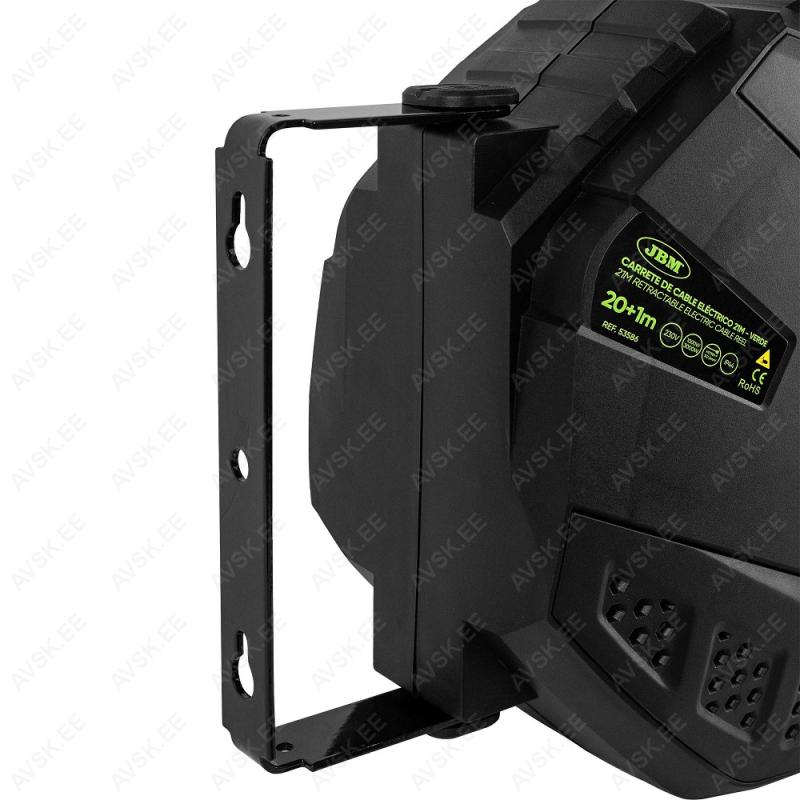 Töökoja kasutusse mõeldud pikendusjuhe plastkassetis. seinakinnitusega. Automaatse tagasikerimisega. Kinnitusjalal keeratav 180°. Kaabel 20 m. sisendkaabel 1 m pikkune. 3x1.5 mm². Kaabli tüüp H07RN-F3G1.5MM2. Koormustaluvus 3000 W täielikult lahtikerituna. poolile kerituna 1000 W. Ülekoormuskaitsega. Kaal 8.35 kg. IP44. kasutatav ka õues.