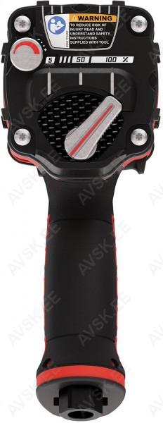 Reguleeritav võimsus 5. 10. 15. 20. 25. 30. 35. 40. 45. 50 ja 100%. Komposiitmaterjalist mootori korpus. Hõõrdrõngaga 1/2" nelikant. 1/4" kiirliitmiku keere. Kahe vasaraga löögimehhanism. 1200 lööki/min. Tühikäigupöörded 7700 p/min. Õhukulu tühikäigupööretel 156 l/min. Max võimsus kinnikeeramisel 1080 Nm. lahtikeeramisel 1300 Nm. Min vooliku läbimõõt 10 mm. Kaal 1.85 kg. Tööriistale sobib kiirliitmik 6158105880.